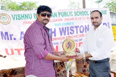 Presenting Momento to Crickter Mr. Ashish Wiston Zaidi U.P. Runji team manager.